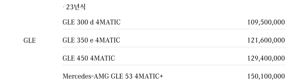 벤츠 GLE 가격은 위와 같습니다.