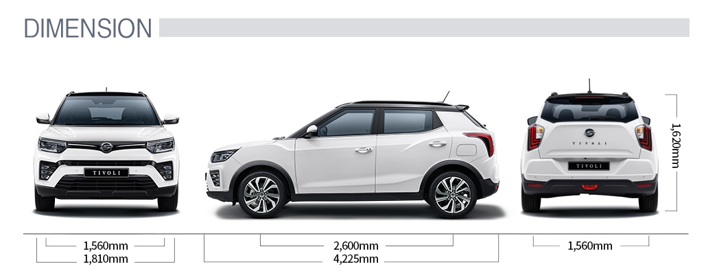 쌍용 티볼리 차량 크기는 위와 같습니다.