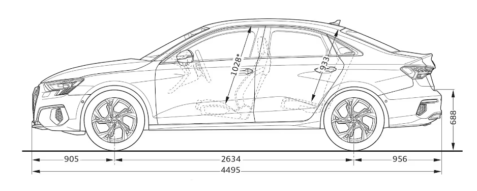 아우디 A3 차량 크기는 위와 같습니다.