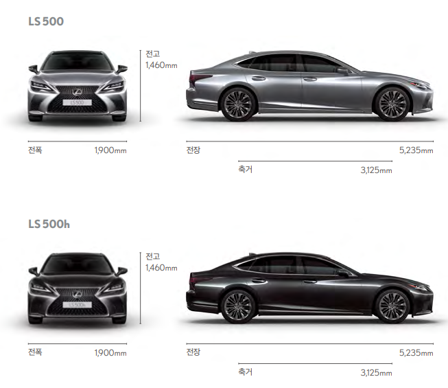 렉서스 LS 차량 크기는 위와 같습니다.