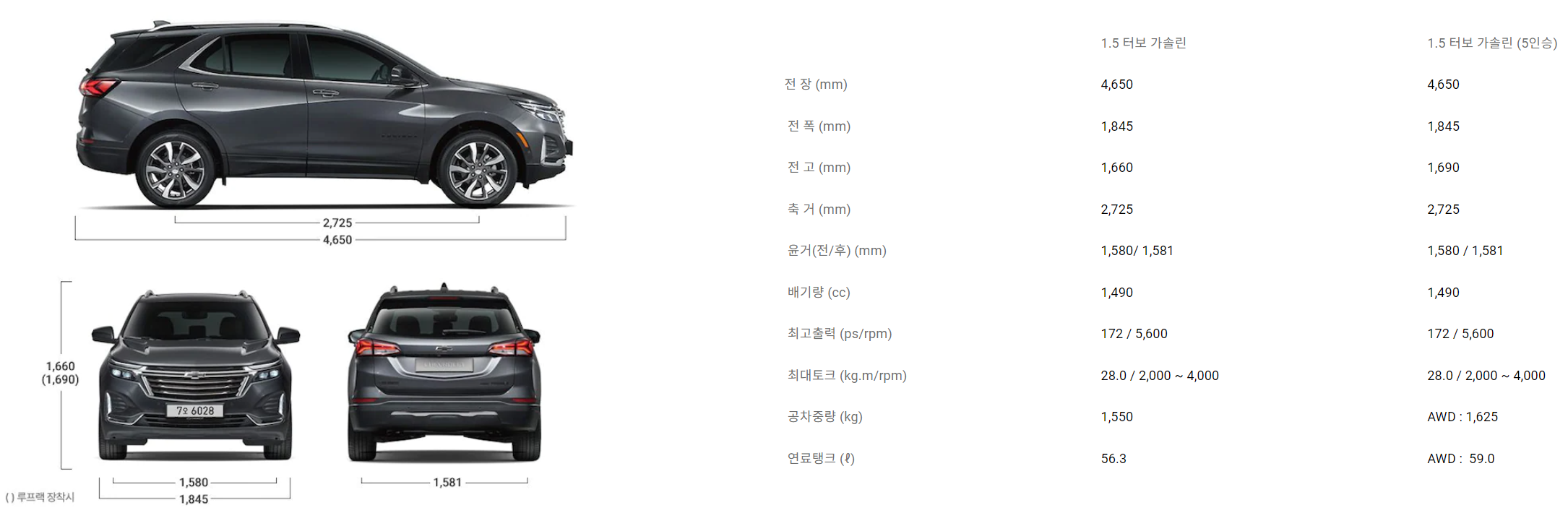 쉐보레 이쿼녹스 제원은 위와 같습니다.
